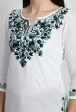 Amunet White Kashmiri Embroidered Short Kurti